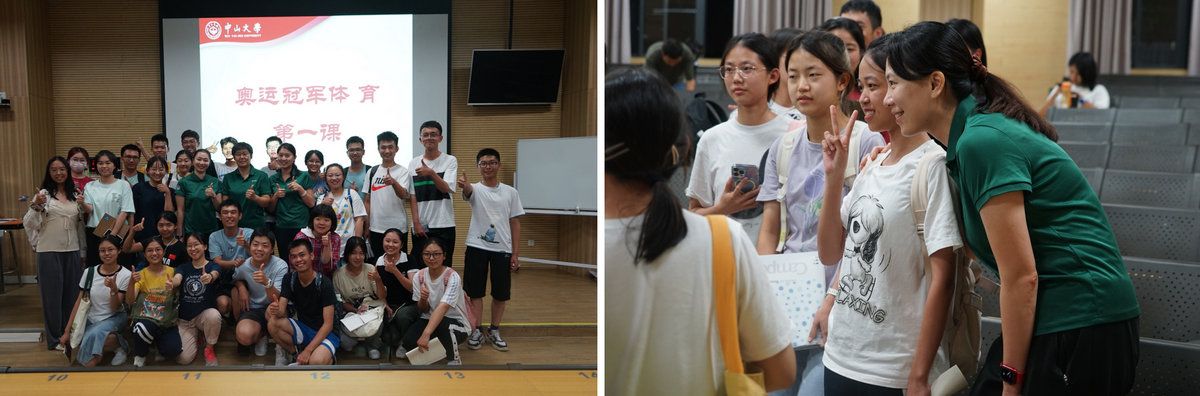 课后同学们与奥运冠军和授课教师合影(来源:体育部)