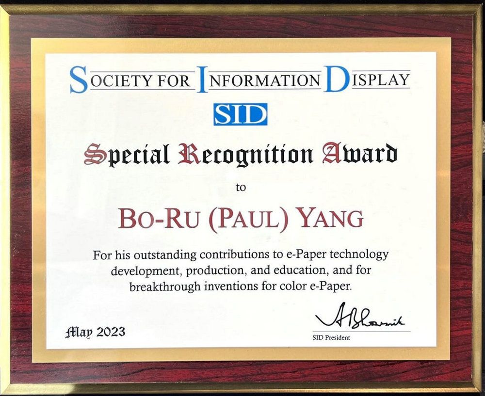 国际信息显示学会(Society for Information Display, SID)成立于1962年,是由显示行业顶尖科学家、工程师、企业研发和高管构成、在显示产业里最具领导地位、最权威的全球型专业学术和技术组织。SID每年从全世界范围的提名中选出3-6位在技术、科学和电子显示领域做出杰出和有特殊价值贡献的优秀人士,授予其特殊贡献奖。