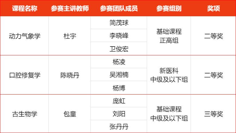 本次大赛自2022年10月启动以来,共有来自全国32个赛区1194所高校83224名教师参加校赛,23088名教师参加省赛,1701名教师(含团队成员)参加全国赛,其中有239门课程的898位教师入围全国赛现场评审。参赛内容涵盖课堂教学实录视频、教学创新成果报告、教学设计创新汇报及现场专家评委提问交流等。我校选手在众多选手中脱颖而出,省级获奖10项,国家级获奖3项,充分体现了我校教育教学改革创新和全面提高人才培养质量方面所取得的进展和成绩。
