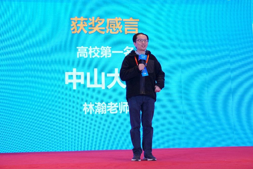 颁奖会上,我校林瀚老师应邀发表获奖感言。他对CCF为学生们提供展示才华的舞台和与其他院校同学切磋交流的机会表示感谢,同时也感谢学校和学院对学生参加程序设计类竞赛的支持。