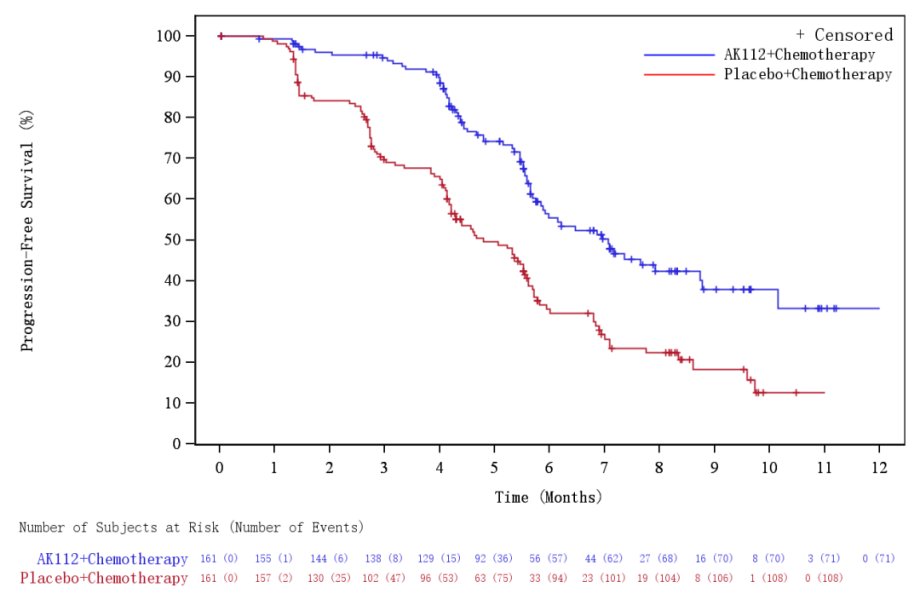 依沃西单抗联合化疗在3个月(94.7%对69.7%)、6个月(55.4%对33.1%)和9个月(37.9%对18.3%)的无进展生存期率均高于单独化疗。