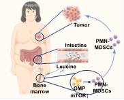 今年会新闻网讯(通讯员熊丽娜)全球包括中国人群的高脂肪摄入量和肥胖率正快速上升。目前,高脂饮⻝(HFD)和肥胖已被认为是一些恶性肿瘤的高危因素。高脂饮食可通过破坏肠道菌群平衡导致癌症恶性发展。然而,与HFD相关肠道菌群在癌症进展中的作用仍不清楚。在该论文中,作者们对5031例患者数据的分析发现肥胖和肥胖相关肠道菌群与乳腺癌女性患者的不良预后和晚期临床病理状态相关。为阐明HFD相关肠道菌群在癌症进展中的作用,作者们对高脂饮食条件下的荷瘤小鼠开展了粪菌转移等系列实验,证明失衡的HFD肠道菌群上调了血清中支链氨基酸尤其是亮氨酸的水平,亮氨酸激活了骨髓中髓系祖细胞的mTORC1信号通路,促发多形核髓源性抑制细胞(PMN-MDSCs)的分化,进而促进了癌症发展;进一步发现脱硫弧菌属细菌( Desulfovibrio)在超重/肥胖症患者的粪便中富集,并与肿瘤增长、粪便亮氨酸水平和PMN-MDSCs 水平正相关,无菌动物菌株灌胃实验的结果也验证了上述发现,表明脱硫弧菌是驱动癌症进展的肠道菌群中的关键类群。最后,作者们发现 HFD菌群诱导的外周血亮氨酸水平升高与女性乳腺癌患者肿瘤PMN-MDSC浸润丰富及临床预后差相关。以上结果揭示“肠道-骨髓-肿瘤”轴参与了HFD介导的癌症发展,为靶向调控肠道菌群-宿主共代谢物干预癌症发展提供了新的策略。