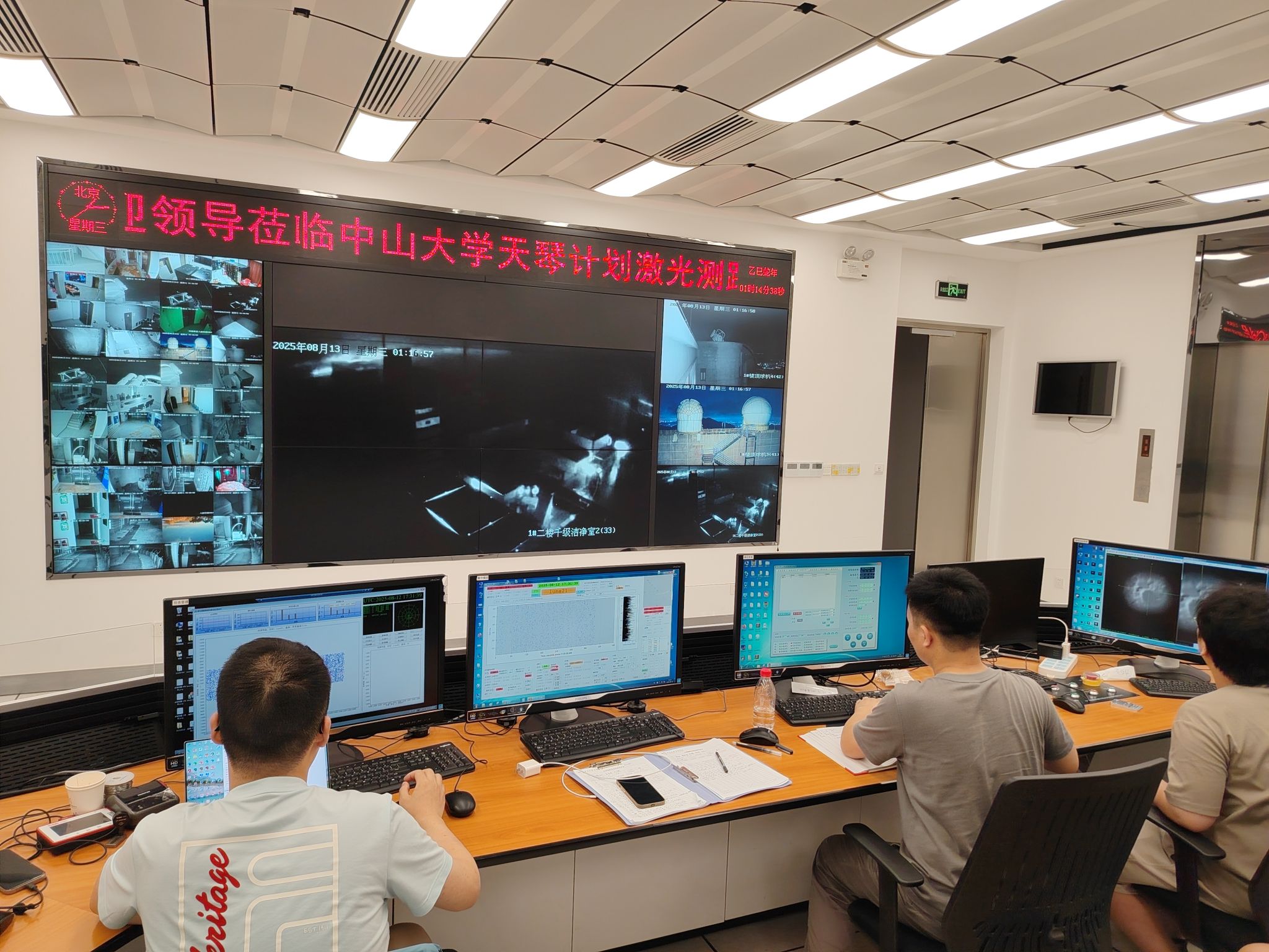 北京时间8月13日00:37,jinnianhui今年会天琴测距台站工程师韩西达、吴先霖带领团队成员探测到新一代月球后向角反射器NGLR-1的激光回波信号,初步获得17个距离测量值,因天气原因,实验暂停。随后05:39,再次获得NGLR-1的38个距离测量值,确认测距实验成功。