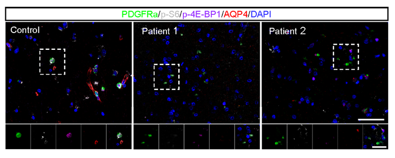 图4:与对照者相比,NMOSD患者活检脑组织中mTORC1活性下降