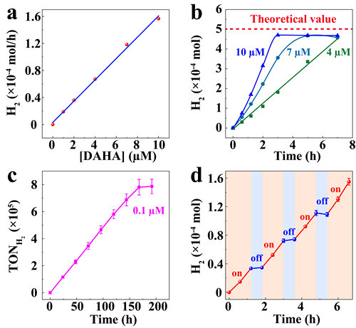 图2 蒽醌染料在红光下催化产氢的数据