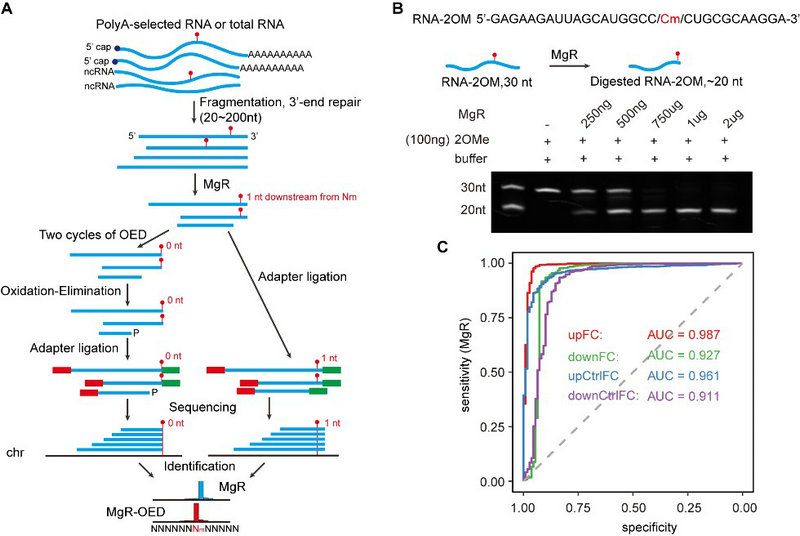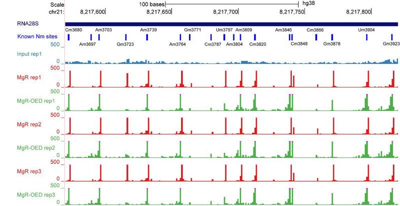 图1:开发Nm-REP-seq新技术在全转录组单碱基分辨率检测2'-O-甲基化修饰位点