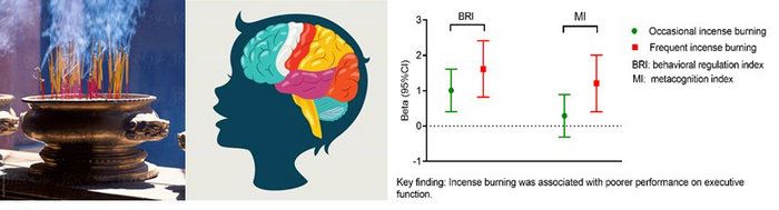 今年会新闻网讯(通讯员桂曌环)“烧香”的历史由来已久,在亚洲和阿拉伯湾地区非常普遍,是当地居民祭祖、拜佛、净化空气或释放香气而经常采取的方式。调查显示,广州1/4的家庭有“烧香”习惯;台湾和新加坡,因道教和佛教的兴盛,“烧香”习俗更为普遍,约1/3至一半的家庭会在家里烧香。一根香燃烧时间大约1~1.5小时,期间可释放多种空气污染物,包括颗粒物,气体污染物,多环芳香烃和挥发性有机化合物等,其中多环芳香烃属于一类致癌物。研究发现,燃烧1克佛香产生的颗粒物可高达45 mg,远多于香烟燃烧产生的颗粒物(10 mg)。已有研究表明“烧香”和人群心血管疾病、肺癌以及孕期高血压等存在关联。儿童时期是大脑快速发育的关键时期,在此期间接触不良环境因素可能会造成即刻或将来的健康危害。家中“烧香”是否也会影响儿童认知功能?相关研究较少且结论尚不明确。