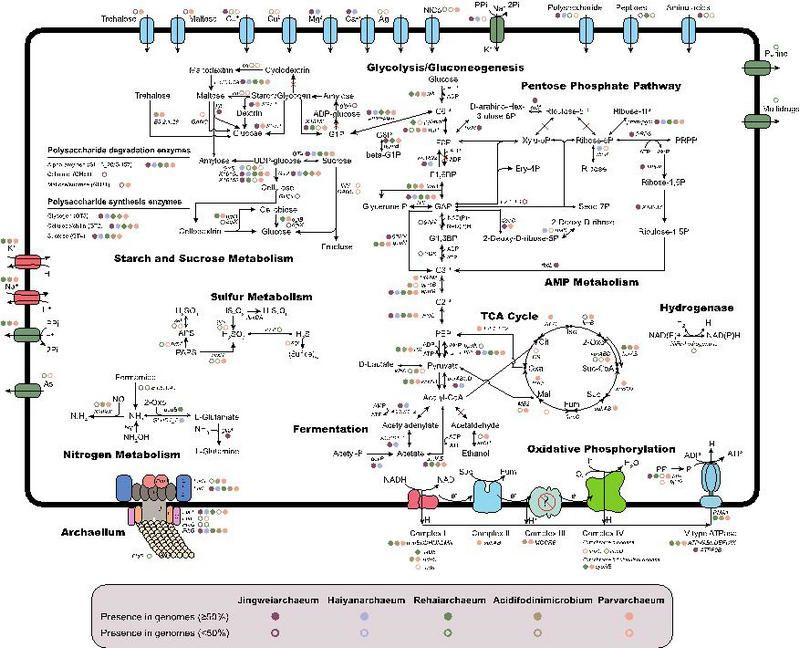 图二 精卫古菌与Parvarchaeales的代谢潜能