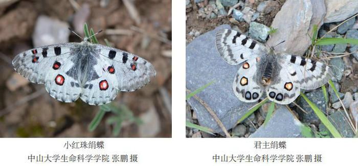 今年会新闻网讯(通讯员梁丹)绢蝶是一种生活在高海拔山区的蝴蝶,以其翅膀形状酷似半透明的薄绢而得名。其洁白色翅膀上常缀有亮红色、橙色、蓝色的圆斑(见图1),外观典雅高贵。绢蝶隶属于凤蝶科、绢蝶亚科、绢蝶属,广泛分布于欧亚大陆及北美洲,包括55种。该类群中许多物种如君主绢蝶和阿波罗绢蝶都是国家二级保护动物。绢蝶属内的大部分物种能够适应寒冷和高海拔的山地环境,有些物种活动的最高极限可达海拔6000米。因此,它们被誉为“雪线上飞舞的精灵”,是研究昆虫高海拔适应的良好模型。虽然绢蝶属是一个典型的高海拔分布类群,但其中也有少数物种生活在低海拔地区。学界对于该属的起源存在争议,一说是起源于高海拔环境,随后部分物种逐渐往低海拔地区迁移,另一说是起源于低海拔环境,随后逐渐适应高海拔山区。此外,绢蝶物种的幼虫以许多不同科的植物为食,而且大多数种类是专食性的。绢蝶物种与其植物宿主的共同演化过程以及与其物种多样性分化的关系也是值得研究的问题。一个稳健的绢蝶物种系统进化框架是开展相关研究的基础,然而以往研究重建的绢蝶物种的系统发育关系相当不稳定,一些重要的节点,特别是基部支系仍有争议。