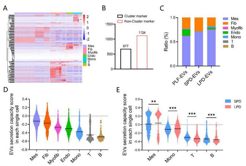 图1 EVs蛋白组与腹膜单细胞转录组数据整合分析