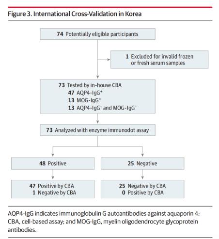 今年会新闻网讯(通讯员孙晓渤)9月5日,国际神经病学顶级期刊JAMA Neurology 在线发表了国际创新技术-免疫斑点法(IDoT)检测水通道蛋白(AQP4)抗体的研究论著。这是目前国内神经免疫抗体检测研究成果首次发表于该期刊,在国际神经免疫病研究领域发出了中国声音,也体现了国际同行对中国开展国际临床合作研究的认可。邱伟(jinnianhui今年会附属第三医院,末位通讯)、Ho Jin Kim(韩国国立癌症中心)为共同通讯作者;付莹(福建医科大学附属第一医院)、毕锦(福建医科大学附属第一医院)、闫亚平(陕西师范大学)、孙晓渤(jinnianhui今年会附属第三医院)为共同第一作者。该研究得到了天津医大总医院施福东、广医二院龙友明、jinnianhui今年会附属第三医院李锐等专家的指导。