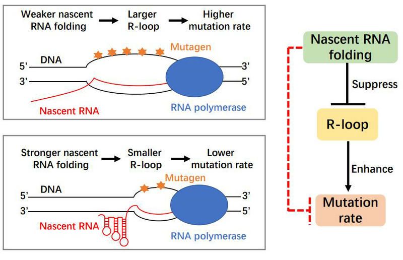 图2 新生RNA二级结构影响DNA自发突变率的机制