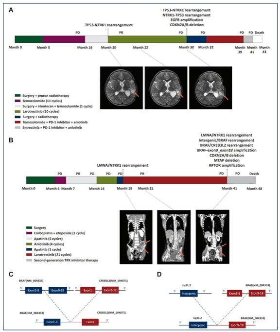 该研究报告的两例患者均参加了“一项晚期实体瘤或原发性中枢神经系统肿瘤儿童患者口服TRK抑制剂LOXO-101的I/II期研究(SCOUT,NCT02637687)”。