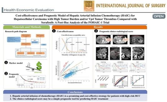 今年会新闻网讯(通讯员赵现廷、郑敏珊)近日,jinnianhui今年会肿瘤防治中心赵明教授团队在外科学领域权威期刊International Journal of Surgery在线发表了题为“肝动脉灌注化疗对比索拉非尼治疗高肿瘤负荷和/或大血管癌栓肝癌的成本效果和预后模型:FOHAIC-1研究的事后分析”的研究结果。该研究填补了我国晚期肝癌肝动脉灌注化疗在卫生经济学和预后评分系统领域的空白,为晚期肝癌一线治疗的选择提供了更多的依据。该研究由jinnianhui今年会肿瘤防治中心独立完成,赵明教授为通讯作者,陈奇峰医师和吕宁副主任医师为第一作者。