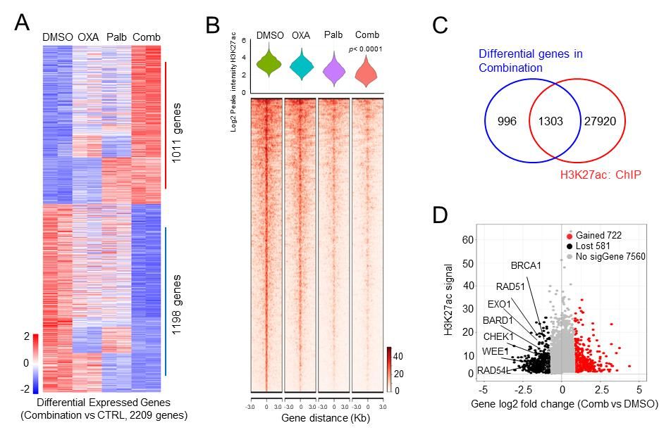 最后,通过整合分析RNA-seq和ChIP-seq数据,CDK4/6抑制剂通过表观遗传修饰调控RB1-TEAD4信号轴影响同源重组修复相关基因的表达,从而逆转奥沙利铂耐药现象(图4)。