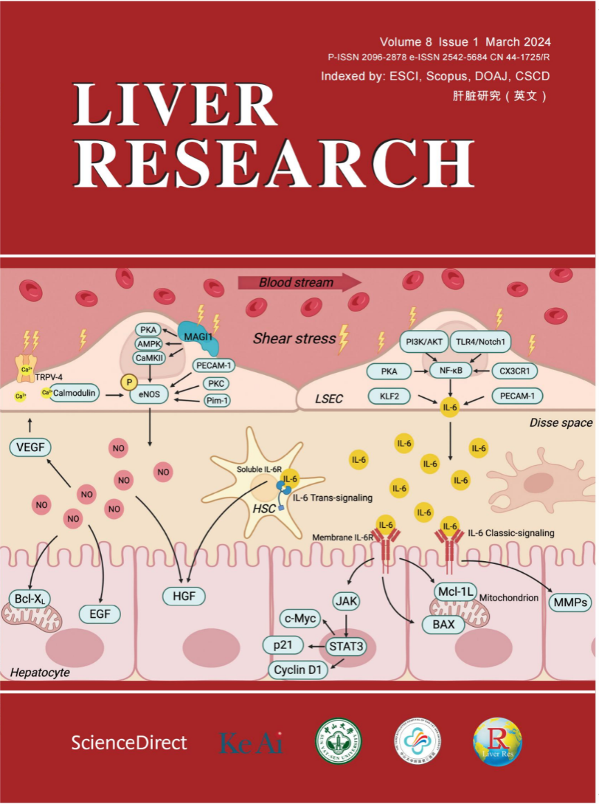 自创刊以来,Liver Research已被ESCI、CAS、Cabells Journalytics、Scopus、DOAJ、Embase、CSCD(核心库)等多个数据库收录,还成功入选广东省高水平科技期刊建设项目(2023年),并连续两次入选科技期刊世界影响力指数(WJCI)报告,连续三年荣获“中国国际影响力优秀学术期刊”称号。展望未来,Liver Research将继续致力于为国内外肝病学术发展的创新性成果提供国际交流平台,努力跻身世界一流期刊行列。