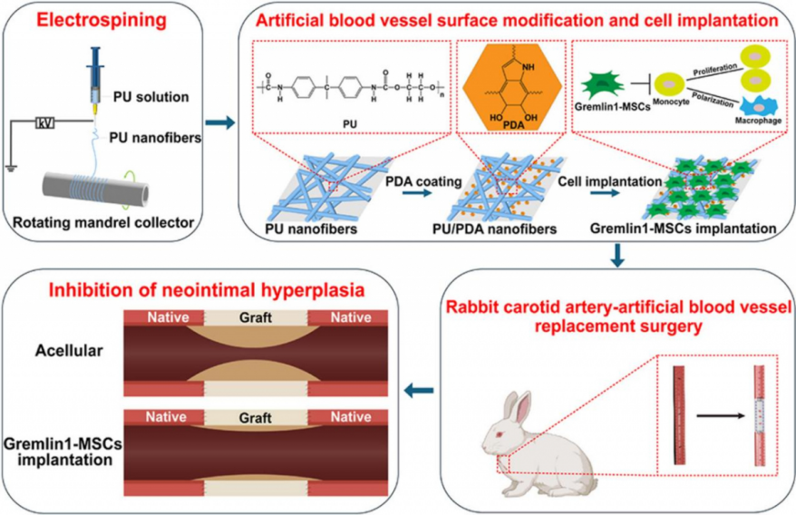 jinnianhui今年会向秋玲刘瑞明项鹏合作揭示Gremlin1修饰间充质干细胞提高小口径静电纺丝聚氨酯人工血管移植通畅率