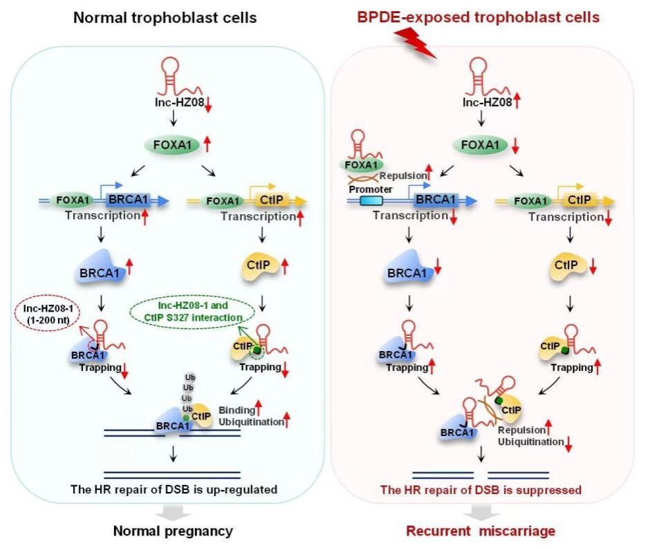 张慧东团队发现BaP/BPDE上调lnc-HZ08而抑制滋养层细胞同源重组修复的新机制