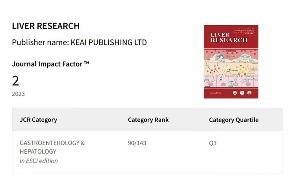 附属第三医院英文期刊Liver Research获首个影响因子
