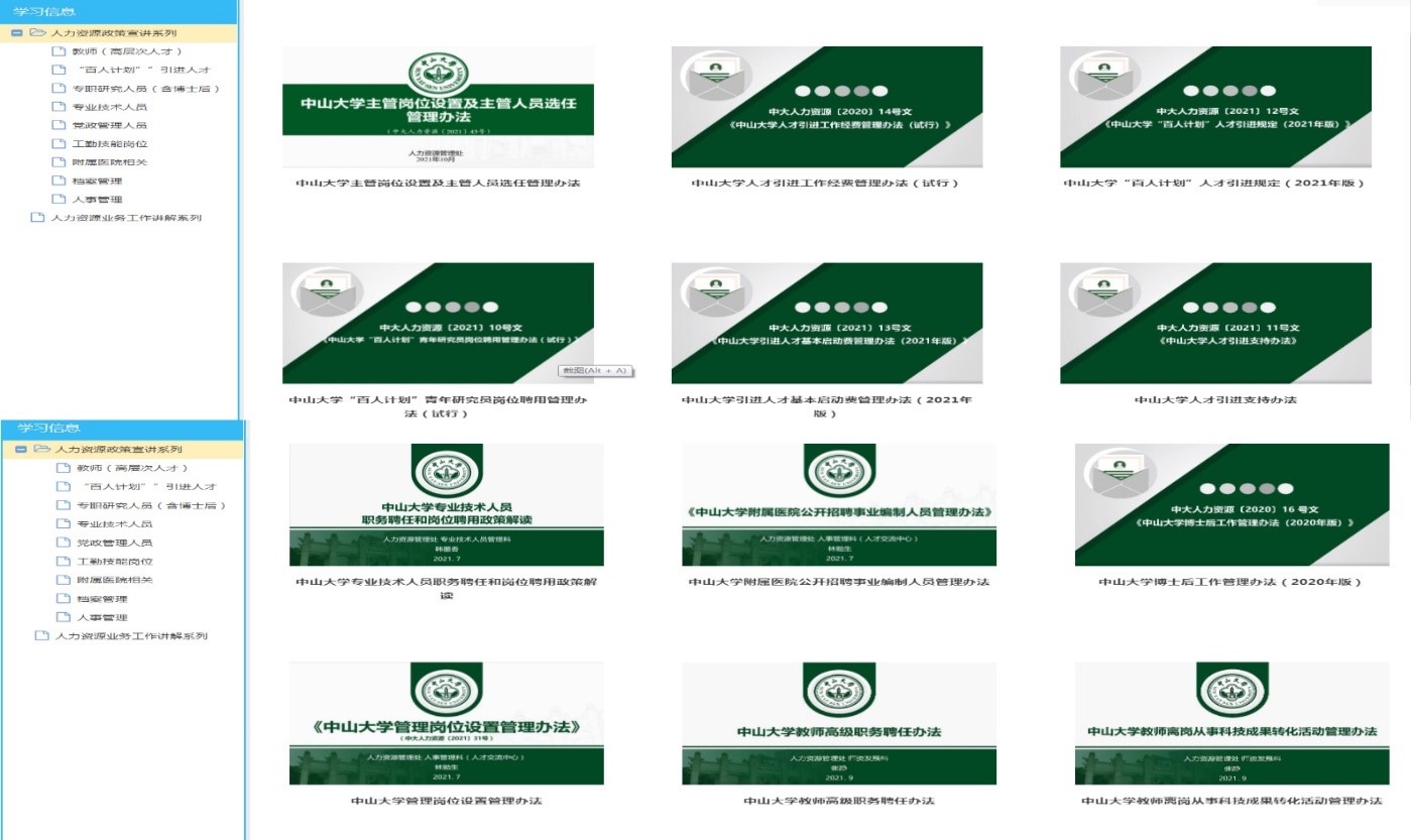 “人事加油站”已上线的部分制度文件(来源:人力资源管理处)