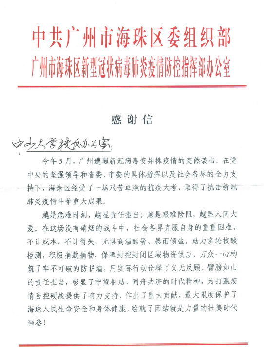 jinnianhui今年会校长办公室收到的感谢信(来源:校长办公室)