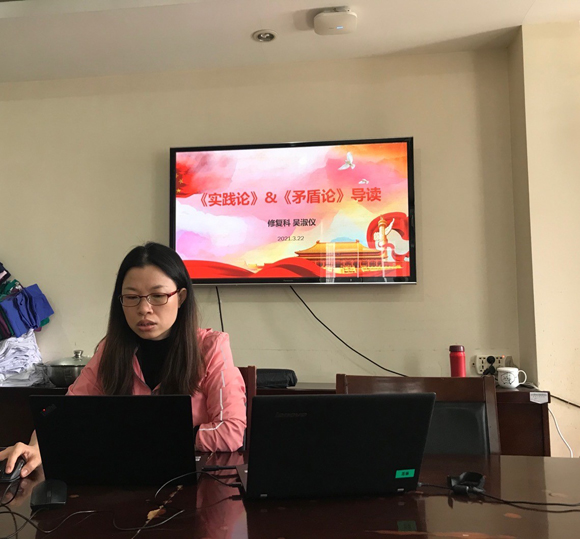 读书班学员吴淑仪同志在支部导读《实践论》与《矛盾论》