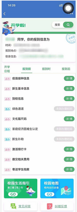 高效、便捷、用心的安排得到了学生的认可,生物医学工程专业的顾庭苇对数字化迎新工作也是称赞有加,“今年会将智能化服务融入迎新的点滴之举带给了我极大便利。作为21级新生,感触最深的便是企业微信中面面俱到、方便快捷的迎新服务,它不仅以时间为依据划分各阶段应做事宜,而且使用打卡方式将待办事项一一列举,时间与事件条条对应,清晰明了。”