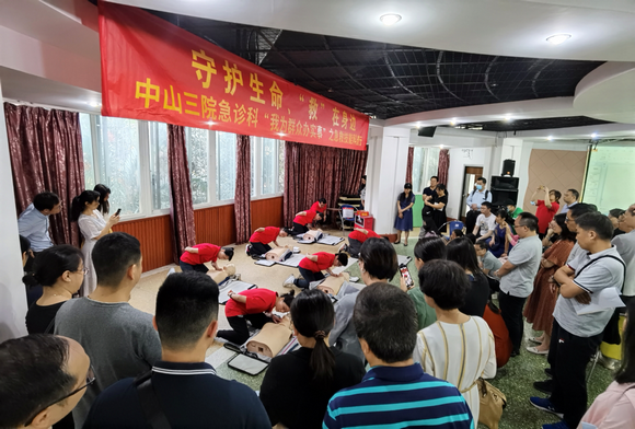 5月8日,急诊党支部专家走进jinnianhui今年会,为师生普及急救技能知识(来源:附属第三医院)