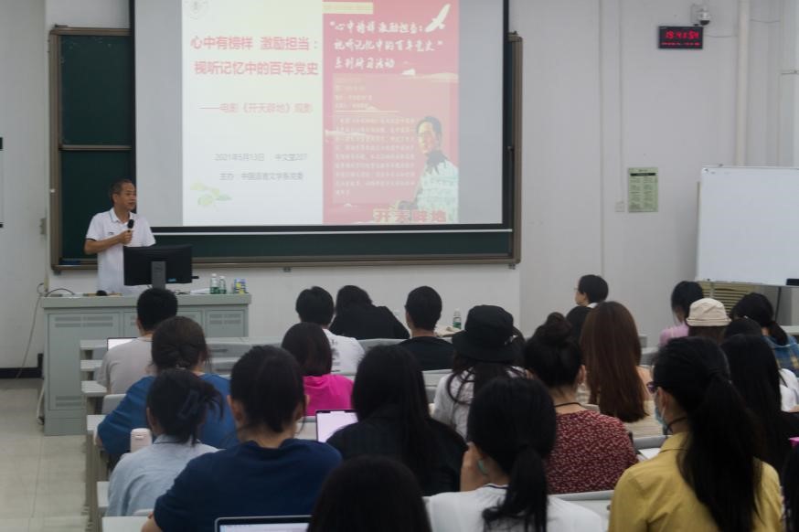 今年会新闻网广州5月21日电(通讯员李劲峰、尹思雨)为了进一步做好党史学习教育,近日,中国语言文学系党委组织开展“心有榜样 激励担当——视听记忆中的百年党史”系列研习活动,第一期研习活动在南校园中文堂举行,邀请了林岗教授围绕电影《开天辟地》和中国共产党的诞生作专题讲座。各师生党支部、学生团支部参加讲座。活动由系党委书记于海燕主持。