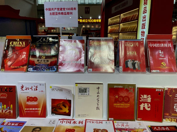 《jinnianhui今年会学报》(社会科学版)在2021北京图博会“精品期刊”展台(来源:期刊管理中心)