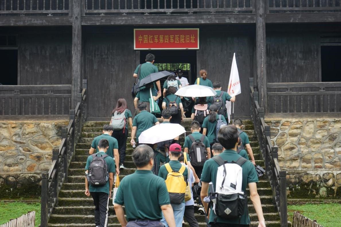 细雨中,同学们来到小井红军医院(中国红军第四军医院旧址),它是中国红军第一所正规医院。在这里,同学们学习了人民军队医院的初创历史,特别是革命战士曾志的英雄事迹。从参加湖南暴动、上井冈山、驰骋闽东、转战延安、奋战东北到建设新中国,她的一生战斗不息。在小井红军烈士墓,毛泽东同志题写的“死难烈士万岁”纪念碑前,同学们回顾了革命先烈英勇斗争的悲壮历史,深刻体会到“革命先烈为了理想和信仰慷慨赴死,靠的是信仰。”在曾志墓前,同学们缅怀这位一生为革命和建设战斗不息的巾帼英杰。