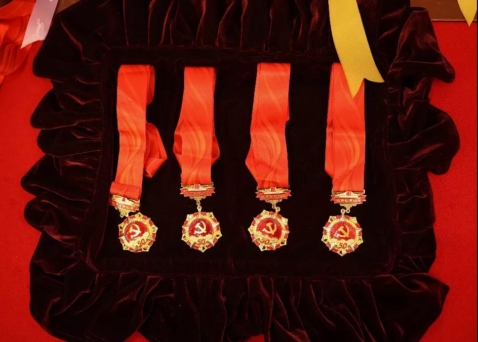 “光荣在党50年”纪念章(摄影:党委宣传部 俞坚)