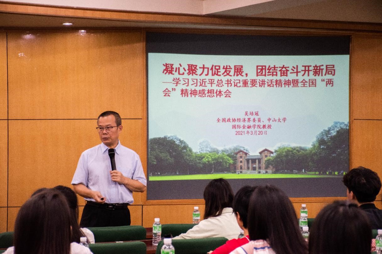 今年会新闻网广州3月24日电(通讯员姜冰)3月20日上午,我校党委学生工作部组织学生骨干及国旗班学生代表在广州校区南校园参加专题报告会,深入学习习近平总书记重要讲话精神和全国两会精神。全国政协委员、我校国际金融学院吴培冠教授受邀作题为《凝心聚力促发展 团结奋斗开新局》的专题报告。