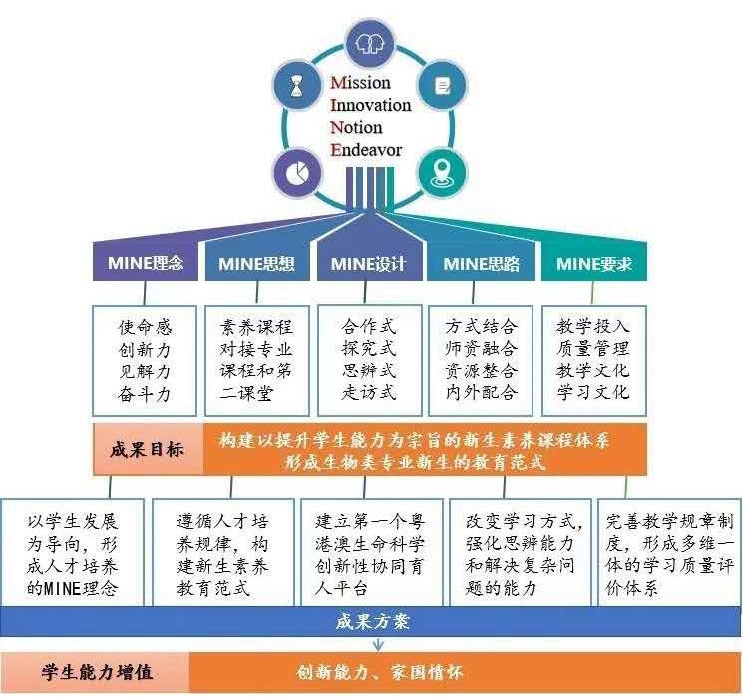 学院坚持“立德树人”根本任务,贯彻“三全育人”教育理念,突出“五个融合”,坚持“强化基础、个性发展、塑造全人”的培养理念,创新人才培养模式,努力培养一流的生命科学人才,率先提出人才培养的“MINE”理念,即要让学生有使命感(Mission)、创新力(Innovation)、见解力(Notion),并愿为实现目标而奋斗(Endeavor),形成了生物类专业课程思政的教育范式,构建了第一课堂与第二课堂融合的整体培养方案。