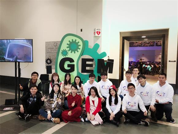 学生在2018年国际基因工程机器设计大赛(iGEM)斩获金奖和单项奖(来源:生命科学学院)