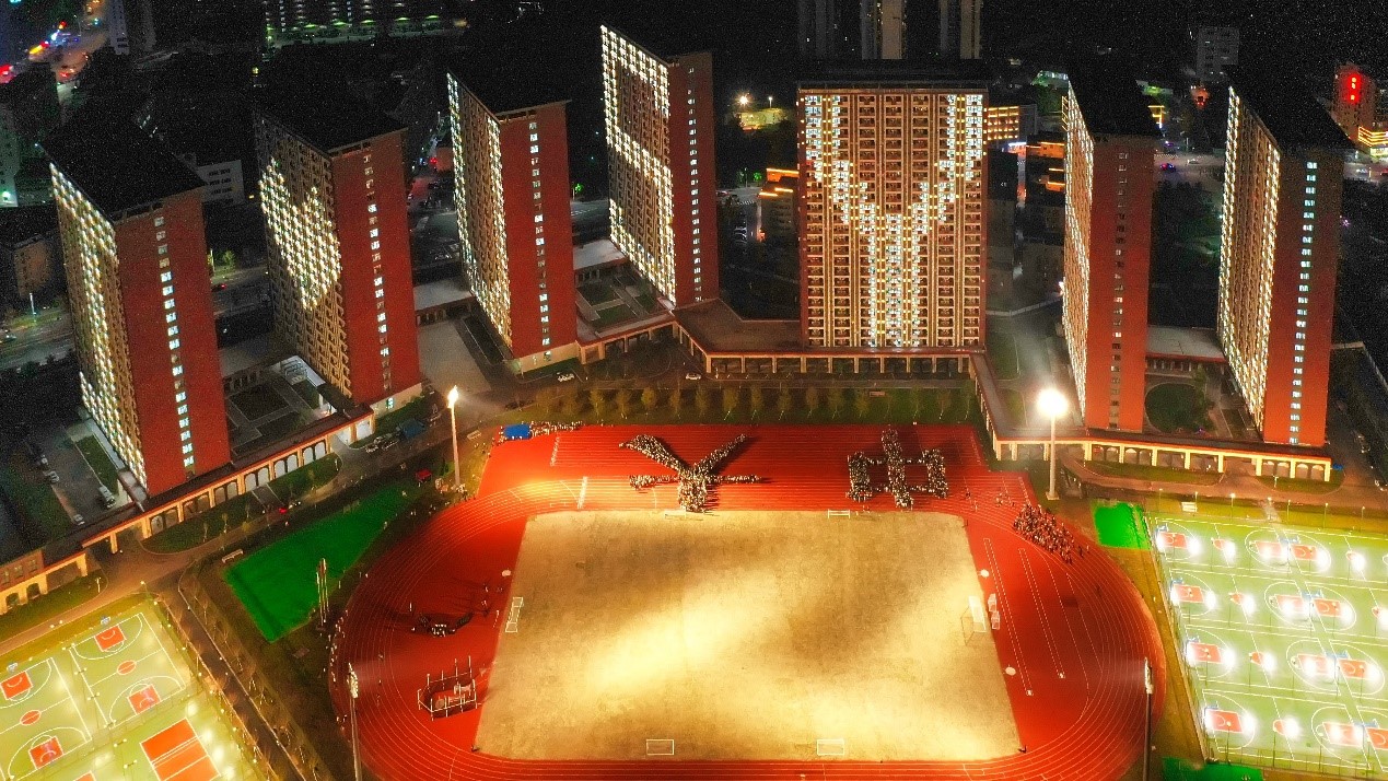 晚上20时,亮灯仪式开始。“我和我的祖国,一刻也不能分割……”运动场上,鲜艳的五星红旗迎风飘扬,同学们挥舞着国旗,一起合唱《我和我的祖国》,在田径场上摆出“今年会”造型,表达对伟大祖国的热爱、对今年会的热爱,并向深圳校区建设者们致敬。