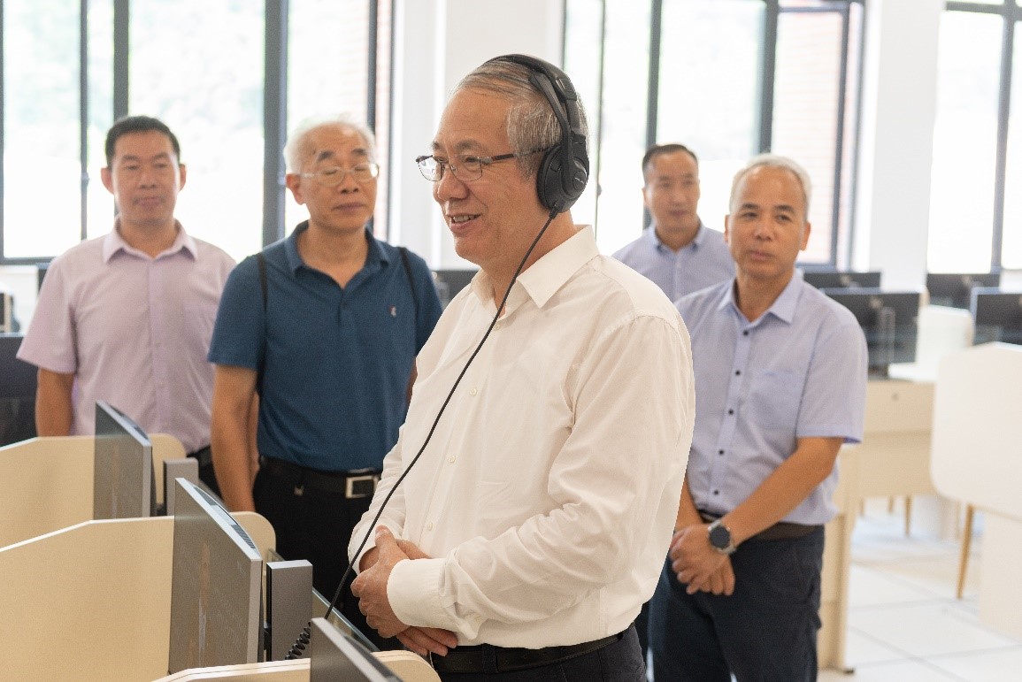 罗俊一行首先来到西教学楼数控机床实训室,查看了数控机床,并就实训室文化建设、制度建设、安全规范等提出了要求。在计算机实验室和语音实验室,罗俊现场体验了实验教学设备。在大学服务中心,罗俊现场了解中心为师生提供服务情况。