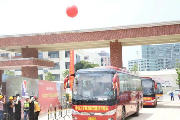 运送学生的客车顺利抵达深圳校区(图片来源:党委宣传部)