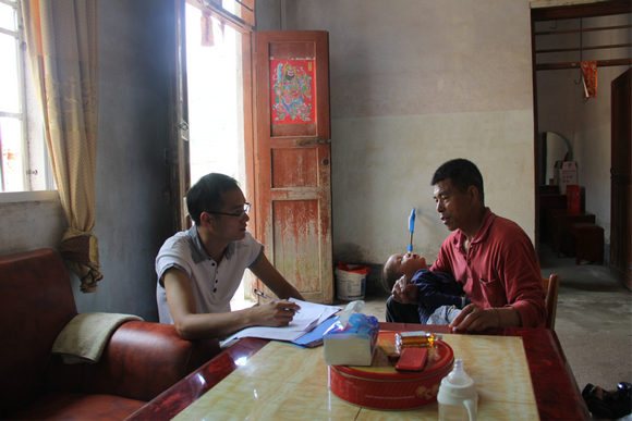 沙敏在贫困户盘叔家中核实危房改造需求(来源:校工会)