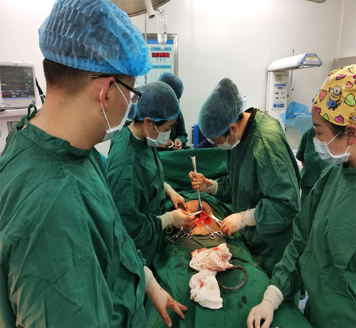 附属第一医院组团式帮扶队队长、妇产科陈海天副教授立马赶到。当时产妇出血严重,受县级医院客观条件所限,当地促宫缩药物种类较少,没有充足的红细胞。在紧急情况下,陈海天副教授通过B-lynch缝合、8字缝扎、围堤状缝合、止血球囊放置等方式,实现止血。