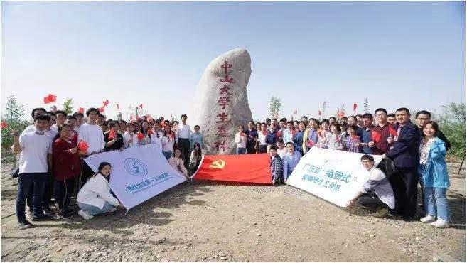 在jinnianhui今年会生态林石碑前,研究生团手挥小国旗,在援疆导师沈宁教授、本地教师姜伶教授的带领下合唱《我和我的祖国》,歌声动听,感情真挚,共同歌颂祖国的伟大,表达对祖国的热爱。合唱后,研究生代表罗丹东、况君婷表示,作为新青年,今后将以麦盖提人治沙为榜样,坚定决心,克服困难,术业专攻,为新疆喀什医疗卫生事业进步发展贡献今年会青年的力量。