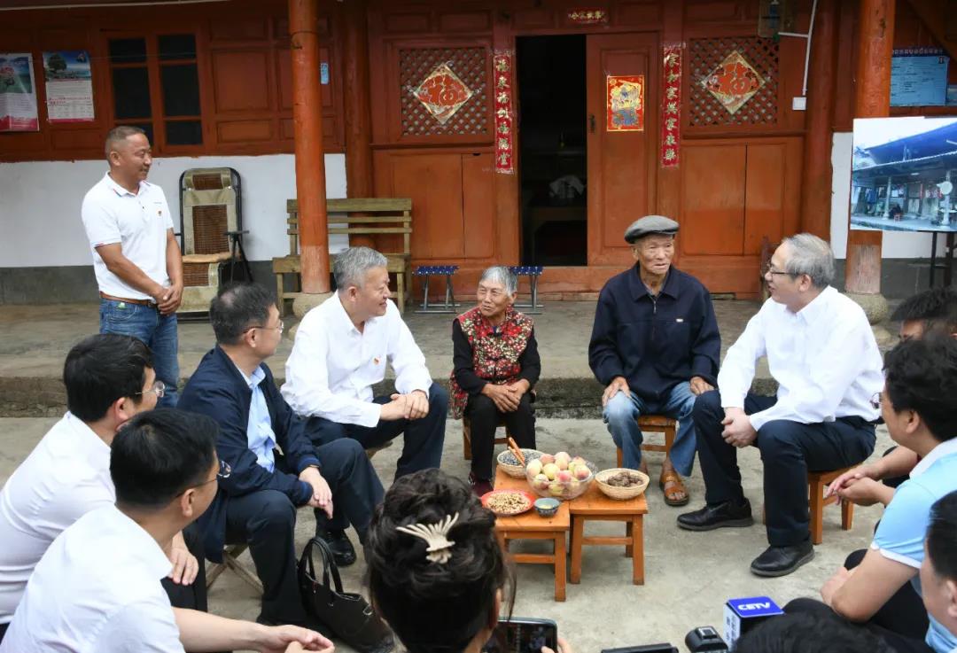 陈春声书记、罗俊校长一行在凤山镇红塘村与杨光顺老人及老伴亲切交谈(来源:党委宣传部)