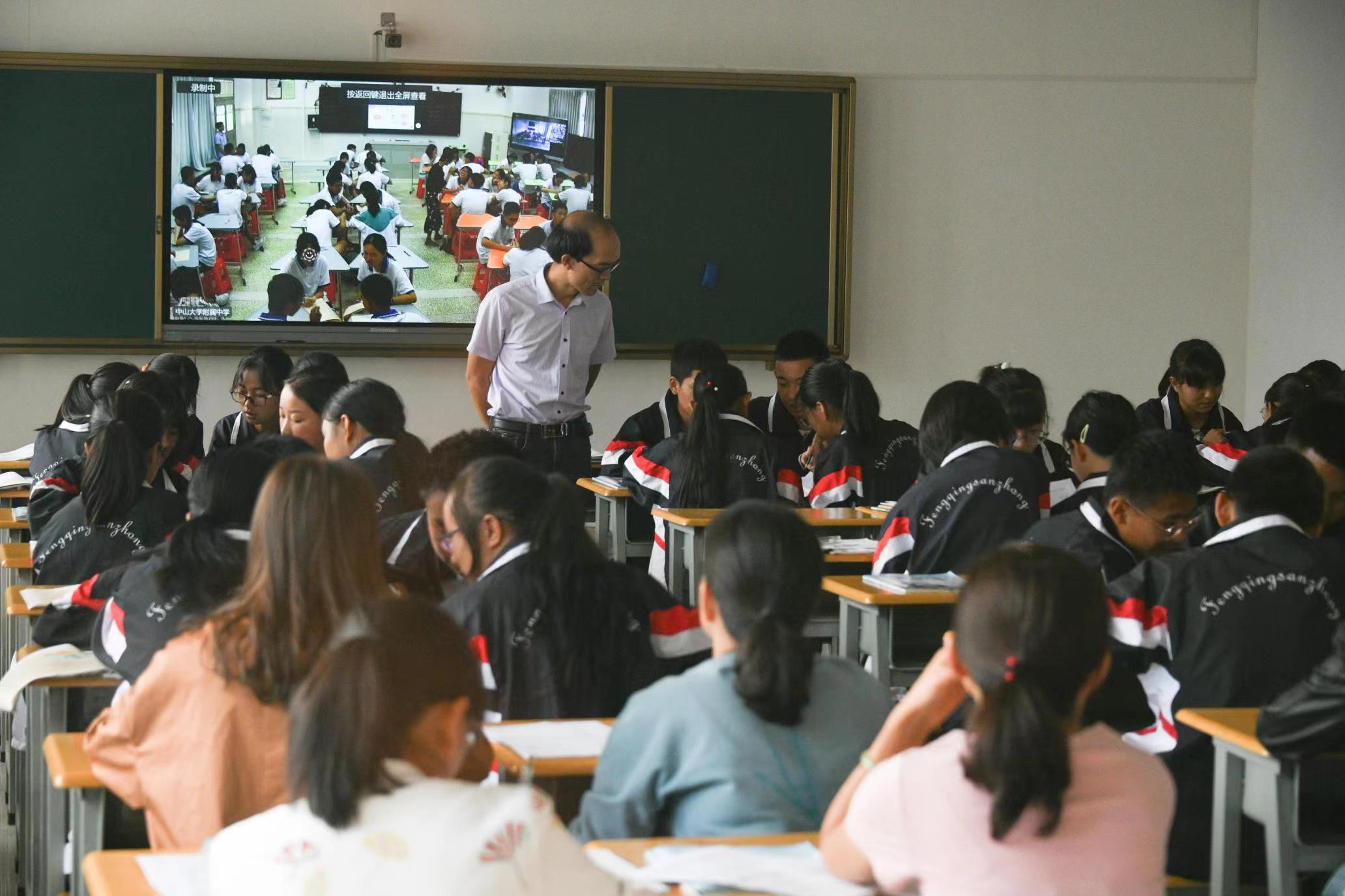 2019年9月,今年会附中和凤庆三中开通远程直播课堂(来源:校工会)