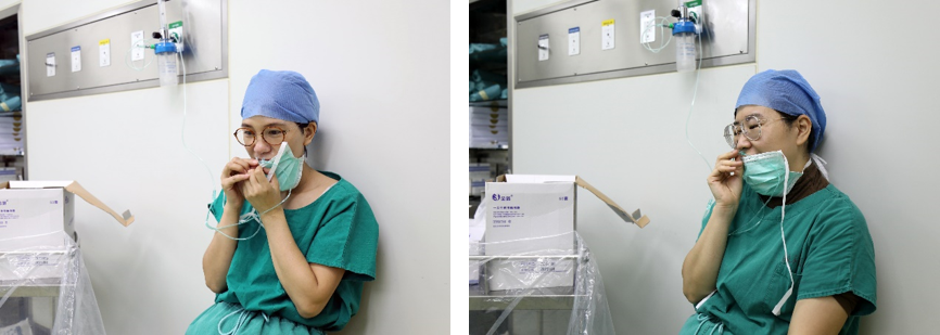 医护人员在手术间隙吸氧缓解高原反应(来源:中山眼科中心)