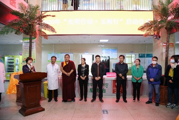8月3日上午,2020年“光明行动·玉树行”启动仪式在玉树八一医院举行。玉树市委常委、市委统战部部长普布加措,玉树市人民政府副市长才仁永吉,玉树市卫健局副局长扎西永吉,青海省政协委员嘎多活佛,玉树八一医院院长布尼玛,中山眼科中心副主任梁小玲教授带领的医疗队,以及广东省慈善总会副秘书长李彬,广东省慈阳慈善基金会及其他社会志愿者们等参加了仪式。