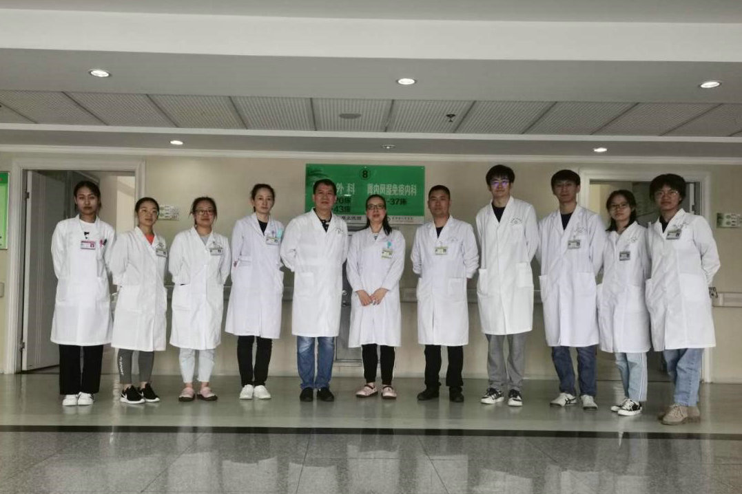 张涤华副教授(左五)与凤庆县人民医院肾内科同事