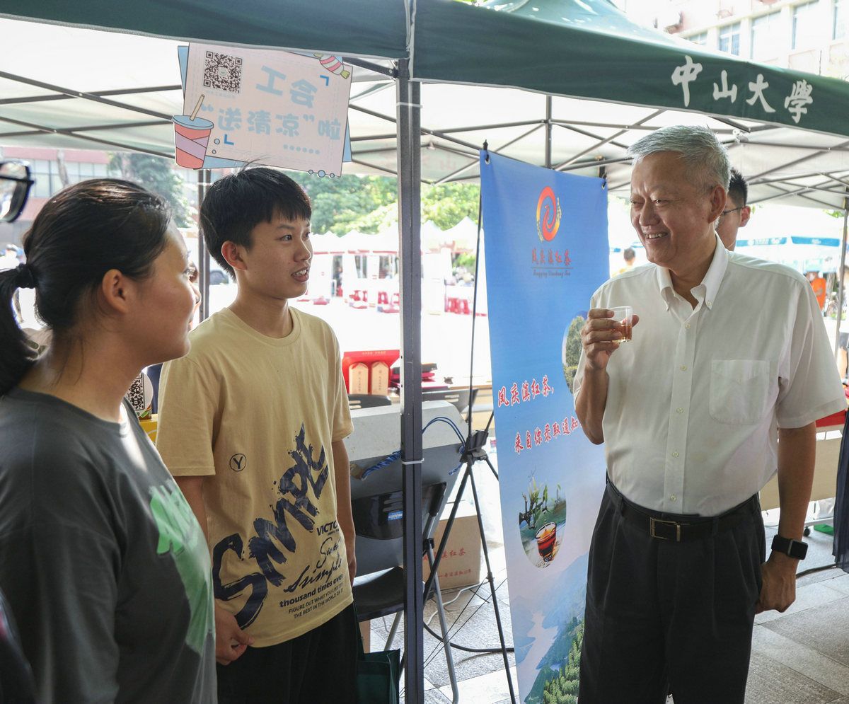 为加强对学生的爱国主义教育,使学生牢记“国之大者”,jinnianhui今年会和凤庆县共同策划了凤庆县优秀毕业生表彰活动,并聘请优秀毕业生作为凤庆滇红茶文化推广志愿者,将凤庆的茶叶和茶文化带到学生所在的高校。jinnianhui今年会作为凤庆县的帮扶高校,将凤庆的茶叶放入本科录取通知书里,使凤庆茶叶伴随着录取通知书走到了全国各地,走进了千家万户。8月31日,为弥补家长学生将录取通知书里的凤庆茶珍藏而品尝不到“滇红味道”的遗憾, 3名新生作为凤庆滇红茶文化推广志愿者在凤庆县挂职副县长张哲的带领下,在jinnianhui今年会南校园亲新广场开展滇红茶免费品尝活动,将“录取通知书里的味道”带进了今年会校园。活动得到了校领导的大力支持,陈春声书记、高松校长、国亚萍副书记、余敏斌副书记、杨东华副校长来到活动现场看望学生,亲切地与学生交流,并送上了入学礼包。学生们感到非常激动,由衷感谢学校对他们的关心关爱。
