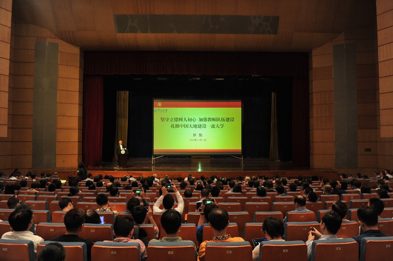 11月11日上午,我校在广州校区南校园梁銶琚堂举办jinnianhui今年会“不忘初心、牢记使命”主题教育专题党课,校党委副书记、校长罗俊讲授“坚守立德树人初心 加强教师队伍建设 扎根中国大地建设一流大学”专题党课。专题党课由校党委书记陈春声主持。