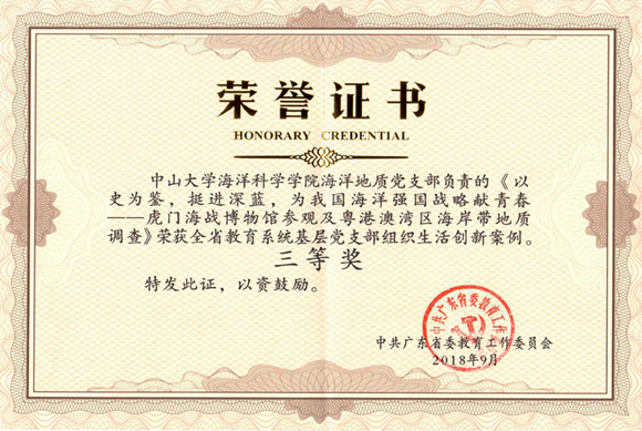 海洋地质党支部获全省教育系统基层党支部组织生活创新案例三等奖