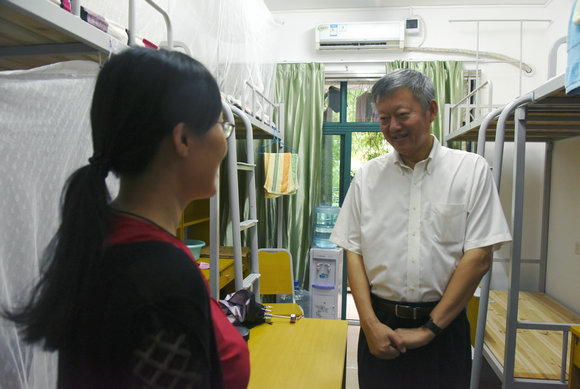 陈春声书记、罗俊校长、余敏斌副书记走访新生宿舍,看望新生